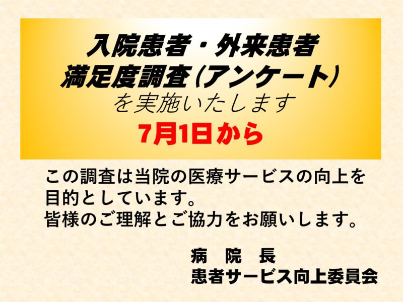 7月から、外来・入院患者さんの満足度を調査するためアンケート調査を実施します。