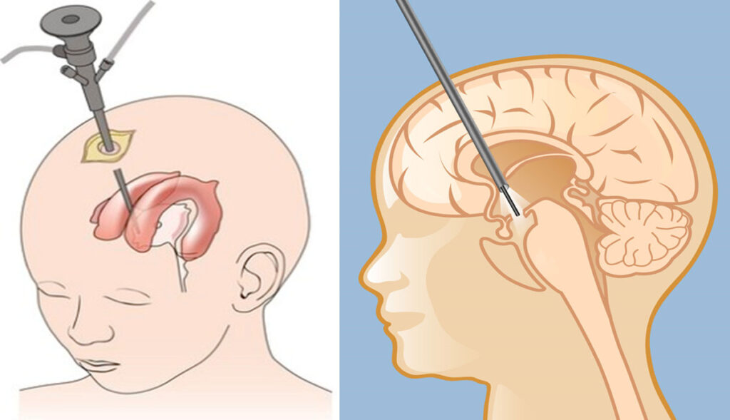 内視鏡を用いて、第三脳室底に開窓し、停滞した脳脊髄液の循環を改善させます。