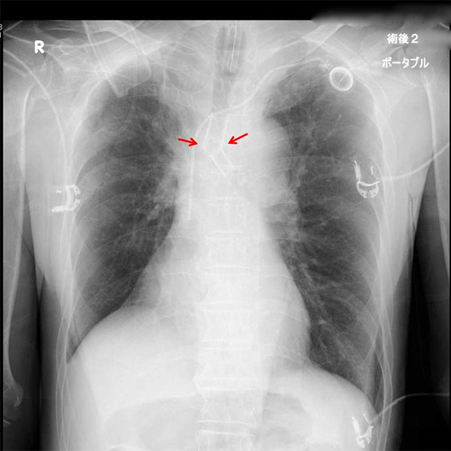 がんや結核後遺症などが原因で気管支内腔が狭くなり呼吸が苦しくなった場合にステント留置術が行われることがあります。メスを用いることなく呼吸困難を解消することが目的です。軟性または硬性の気管支鏡を用いて気道内にステントを挿入し狭くなった気管・気管支を拡張します。レーザー治療や風船による拡張術が併用されることもあります。通常の麻酔や気道確保が困難な場合は、麻酔科医・臨床工学士・呼吸器内科医など多くのスタッフと協力して一時的な体外式膜型人工肺(ECMO・エクモ)も併用して安全確実に手術を行います。